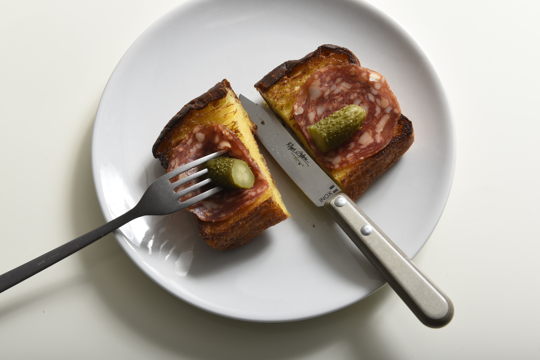カリカリに焼いたトーストに好きな具材をドーン、とのせて食べやすい大きさにカットする、