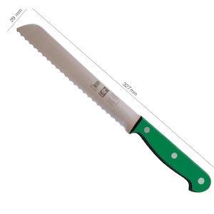 握りやすいグリップ、厚みのあるしっかりとした波刃で安定してご使用いただける重量感のあるブレッドナイフです。硬めのパンだけでなくソフトな食パンもきれいにスライスできます。