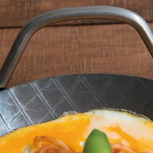 鍛造のハンドメイドで作られるクラシックフライパンに並行して戦後の需要増加に対応できるものをと開発されたのがプレスパンシリーズです。機械生産の為、ハンドメイドに比べて生産量も多く、浅型、深型、ベントハンドルなどバリエーションも多いため、お客様の用途に合わせて選ぶことができ、お料理の幅が広がります。また鍛造のクラシックフライパン同様、蓄熱性に富み、食材の持ち味を生かしつつじっくりと焼き上げることができます。使えば使うほど馴染み、風合いが増すのもハンドメイド同様、ご自身で育てる楽しみのあるプレスパンをぜひ末長くご使用ください。