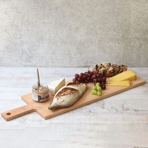 カナダやアメリカを産地とする広葉樹を使用し、福岡県大川市で加工したカッティング/サービングボード。一枚板からできたシンプルなボードは継目がなく、それぞれの自然な木目が生かされた仕上がりで一枚、一枚異なる風合いをお楽しみいただけます。手軽にパンやオードブル、フルーツ等を盛り付けてそのまま食卓で切り分けることができるので、忙しい朝などにもおすすめです。