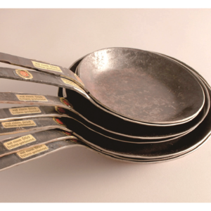 鉄フライパンは強度も高く堅剛で空焼きしても劣化がありません。使えば使うほどなじみ、よりよく美味しく調理でき風合いも増します。ドイツはもとよりヨーロッパで,このマイスターが作るクラシックなフライパンが見直され生産が追いつかない状況です。