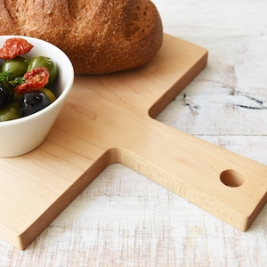 カナダやアメリカを産地とする広葉樹を使用し、福岡県大川市で加工したカッティング/サービングボード。一枚板からできたシンプルなボードは継目がなく、それぞれの自然な木目が生かされた仕上がりで一枚、一枚異なる風合いをお楽しみいただけます。手軽にパンやオードブル、フルーツ等を盛り付けてそのまま食卓で切り分けることができるので、忙しい朝などにもおすすめです。