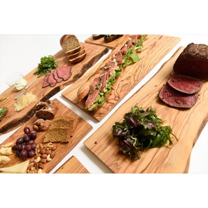 イタリア、カラブリア産のオリーブウッドを使用し、福岡県大川市で加工したダスホルツ・オリーブ。オリーブならではの大胆な木目が映える一枚板から切り出したザッカワークスのオリジナルのボードです。明るい木目の美しさが引き立つモダンでスクエアなタイプと、樹皮を残し自然なカーブを生かした力強いタイプ。 お一人様用のワインのおつまみから大人数のパーティ用の華やかな料理まで、使うシーンやテイスト、用途に合わせて使い分けいただけます。