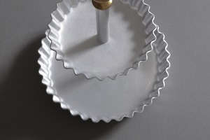 アルミの素材感がケーキなどのスイーツの他パンやフルーツなどをより華やかに引き立て、柔らかな印象に演出するビュッフェスタンドです。